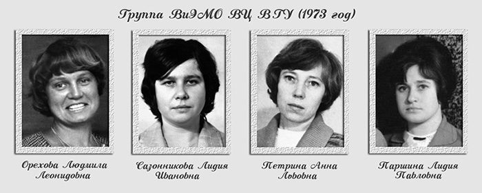 Когда-то молодыми девчонками, закончившими университет, пришли они работать программистами на вычислительный центр ВГУ. Профессия им нравилась, работать было интересно. Отрасль электронных вычислительных машин в 70-е годы XX-го столетия начинала стремительно развиваться. Программирование переходило с кодов на алгоритмические языки, начинали внедряться первые операционные системы. С ЭВМ приходило так называемое математическое обеспечение (операционная система, трансляторы с алгоритмических языков, библиотека стандартных программ и т.д.). Для работы с ними изначально и организовывалась группа «Внедрение и эксплуатация математического обеспечения (ВиЭМО)». Вот эта группа под руководством Семеновой Зинаиды Петровны и состояла из четырех молодых программисток.