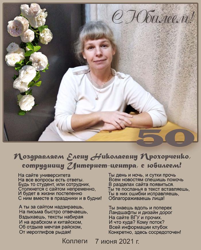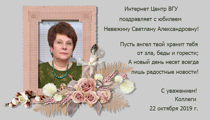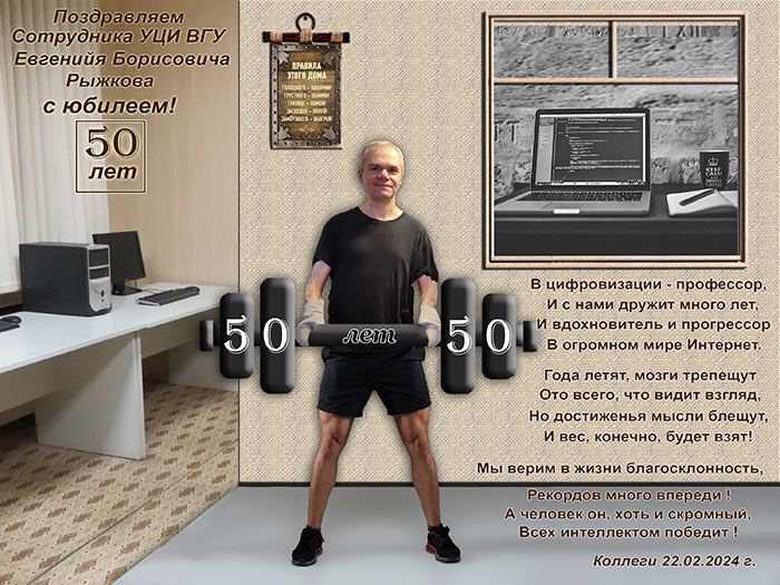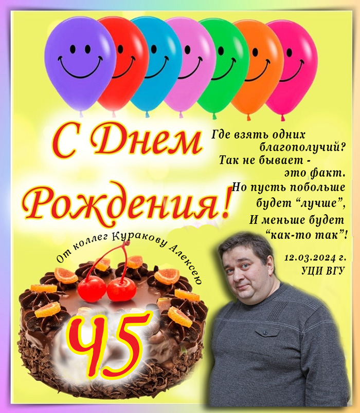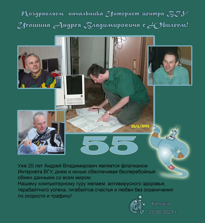 Сотрудники Центра Интернет ВГУ поздравляют своего коллегу с юбилеем и желают ему успехов во всем: в личной жизни, в здоровьи, в работе и во всех его начинаниях и увлечениях.