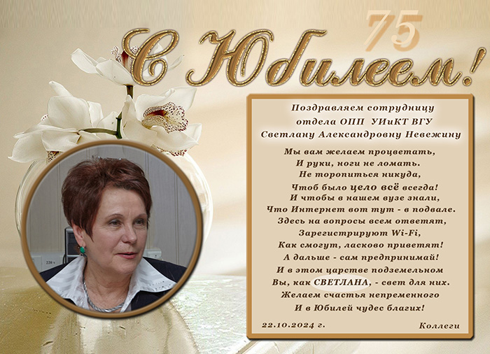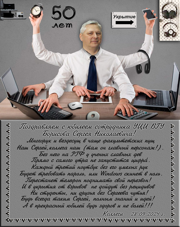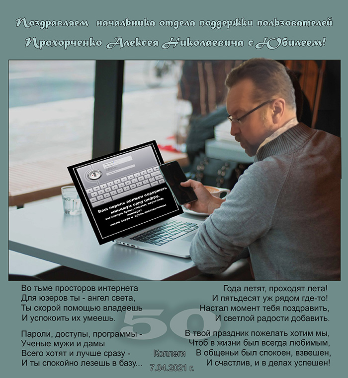 Поздравляем с юбилеем сотрудника Университетского Интернет-центра Василия Александровича Кулика и желаем здоровья и успехов в работе и личной жизни!