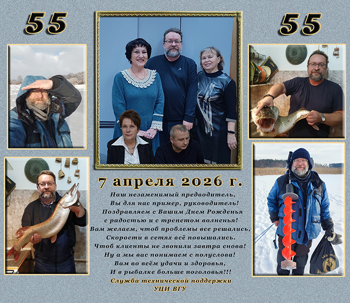 Сотрудники Центра Интернет ВГУ поздравляют своего коллегу с юбилеем и желают ему успехов во всем: в личной жизни, в здоровьи, в работе и во всех его начинаниях и увлечениях.